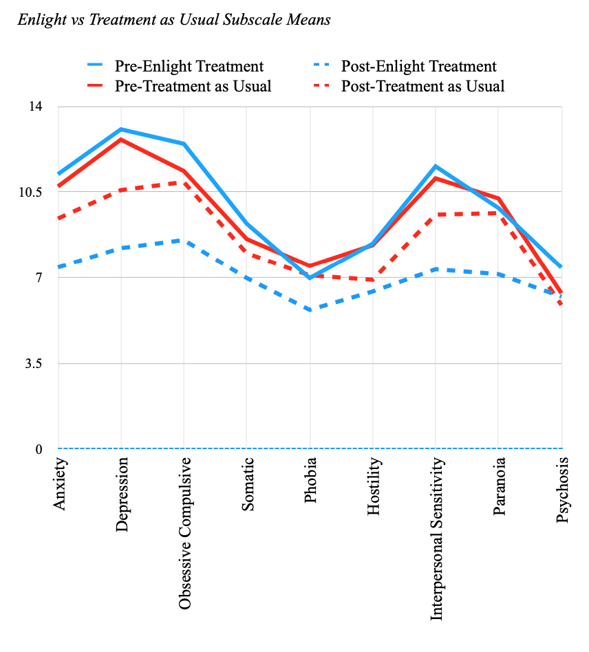 The Symptom Assessment-45 (SA-45) questionnaire is the instrument used to assess the before and after prevalence of nine symptom domains relative to a single application of the Enlight™ Treatment.